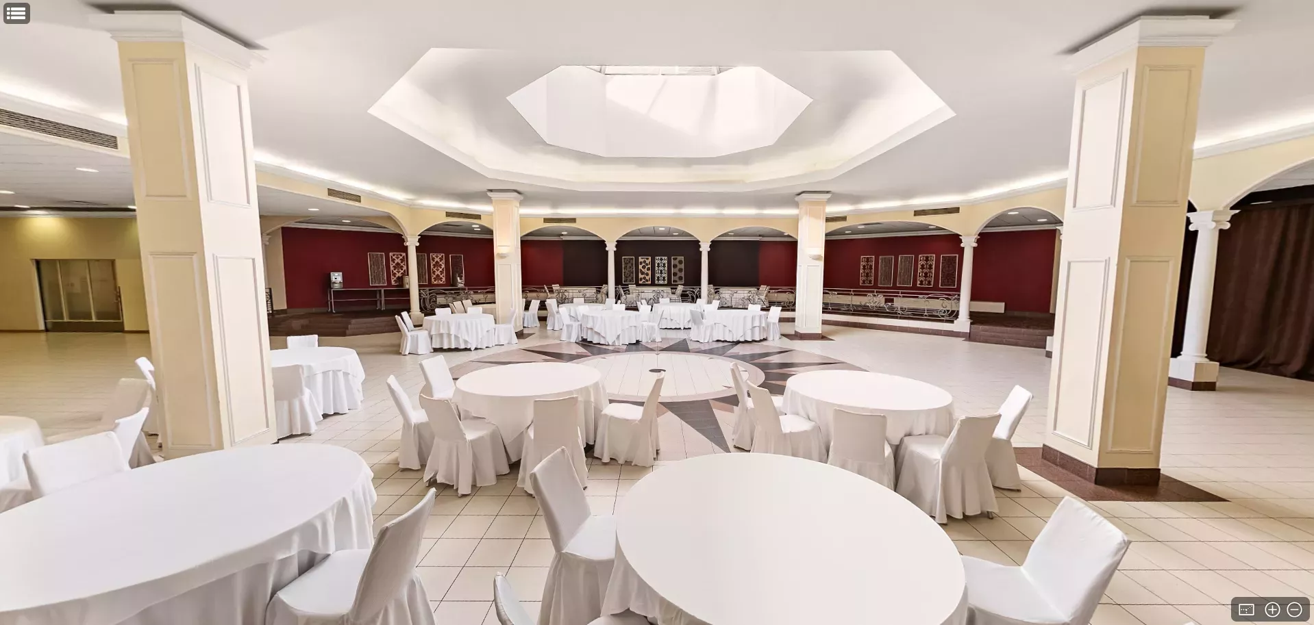 Зал Atrium – просторное пространство, способное вместить до 350 гостей. Оно отличается светлым и элегантным дизайном, идеально подходящим для свадебных церемоний, банкетов или кофе-брейков. Доступно для инвалидных колясок.